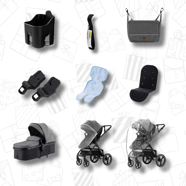 Coș de cumpărături detașabil, husă de ploaie, geantă pentru mămici, plasă anti-insecte și suport de vară