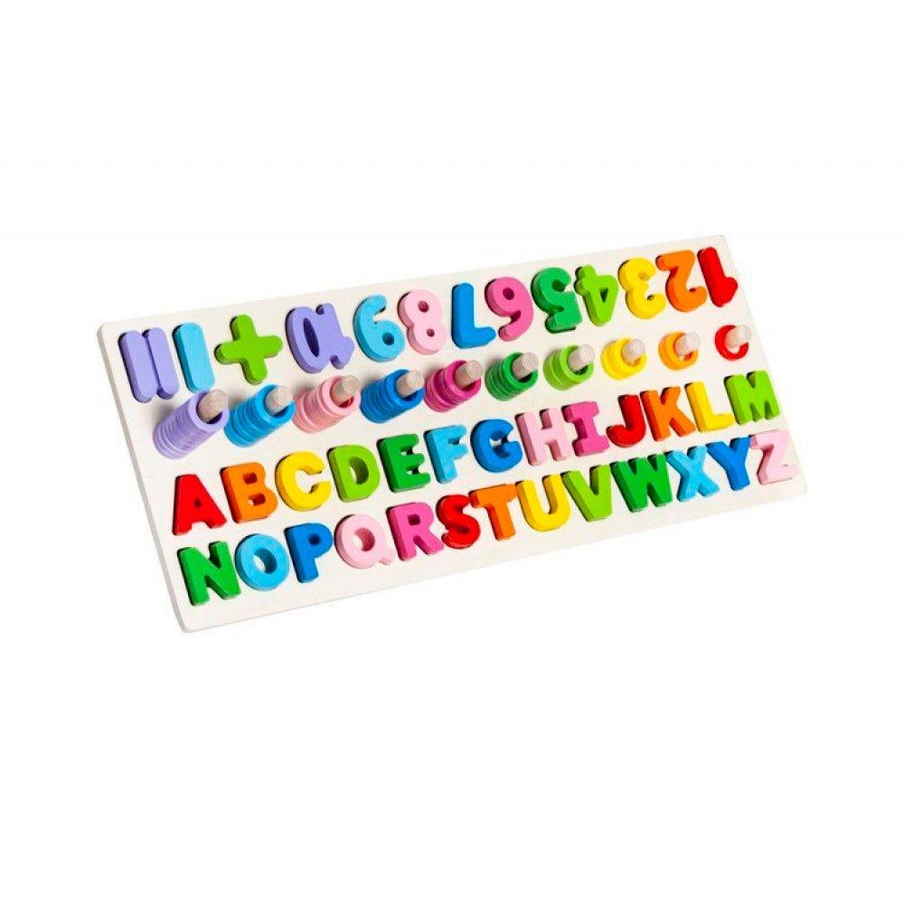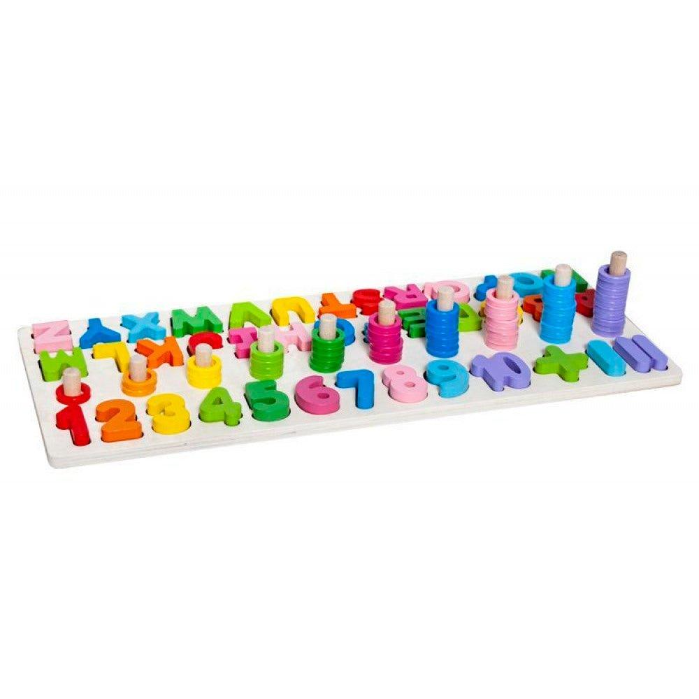 🔠 ABECEDAR ȘI NUMERE - setul este compus dintr-o tablă de lemn cu întreaga abecedă și numere, care au dubluri sub formă de bețișoare cu numărul corespunzător de cercuri. Poate fi îndepărtat și ajustat. Totul este aranjat în ordinea corectă de la prima la ultima literă a abecedei și de la cel mai mic la cel mai mare număr.