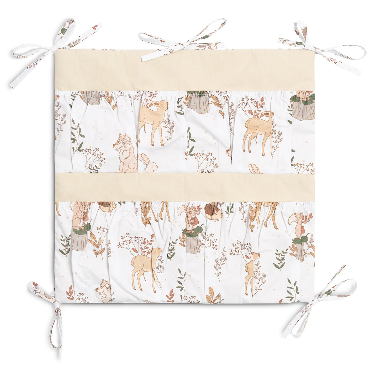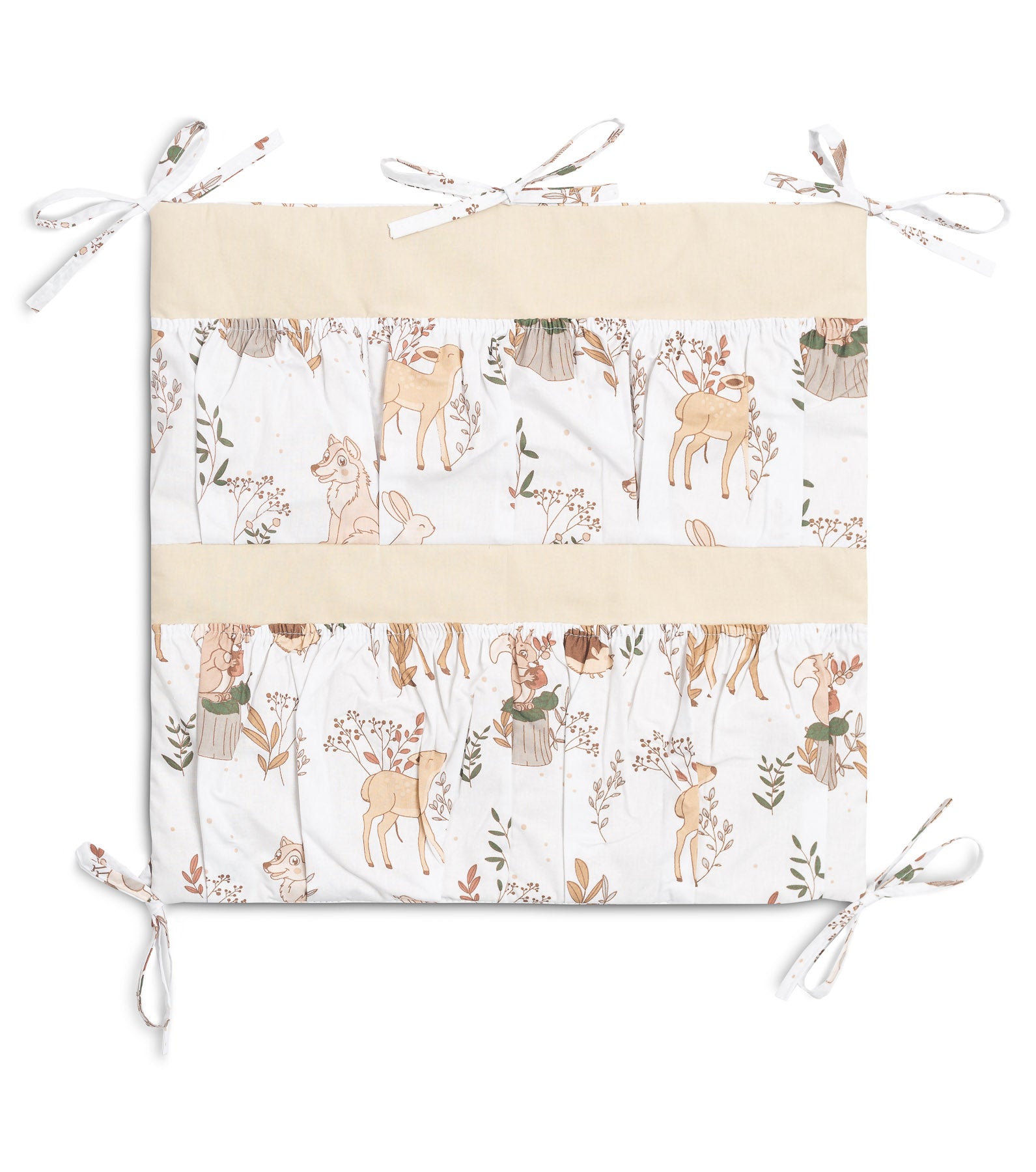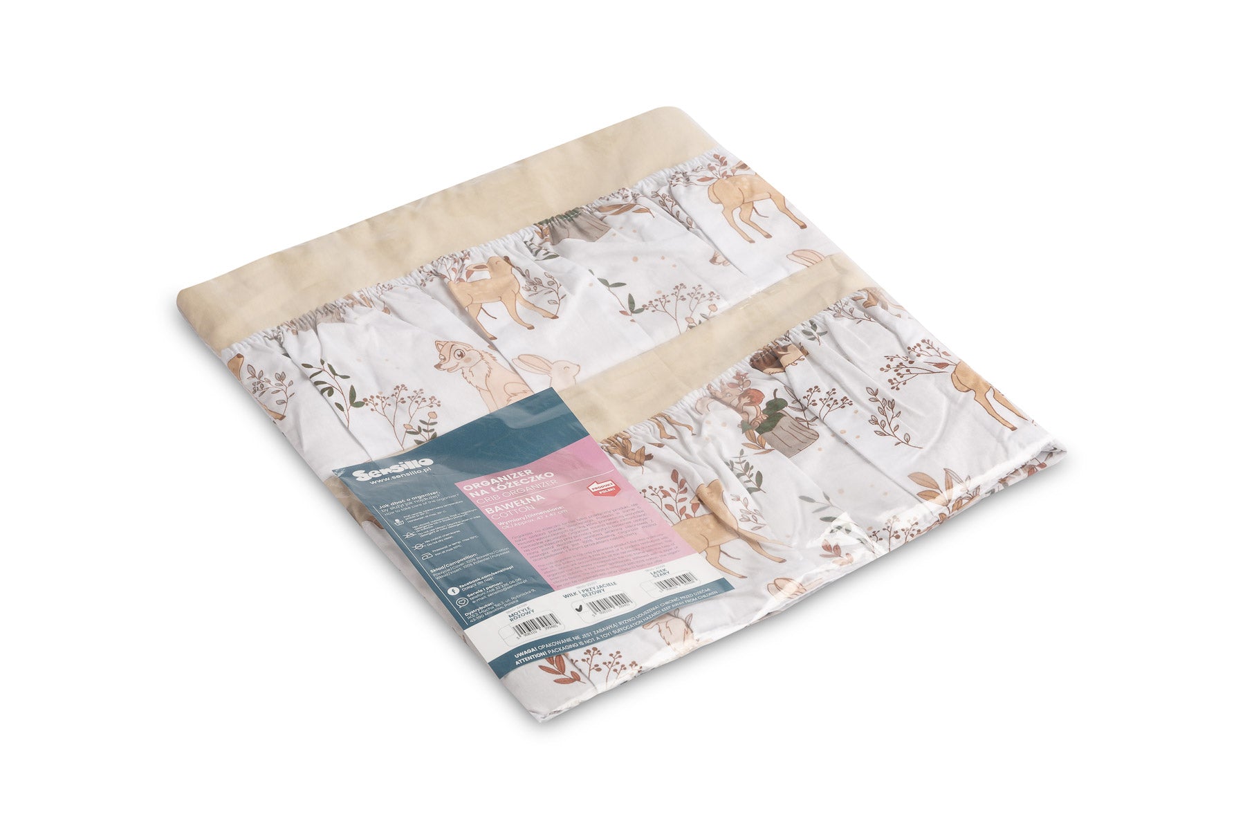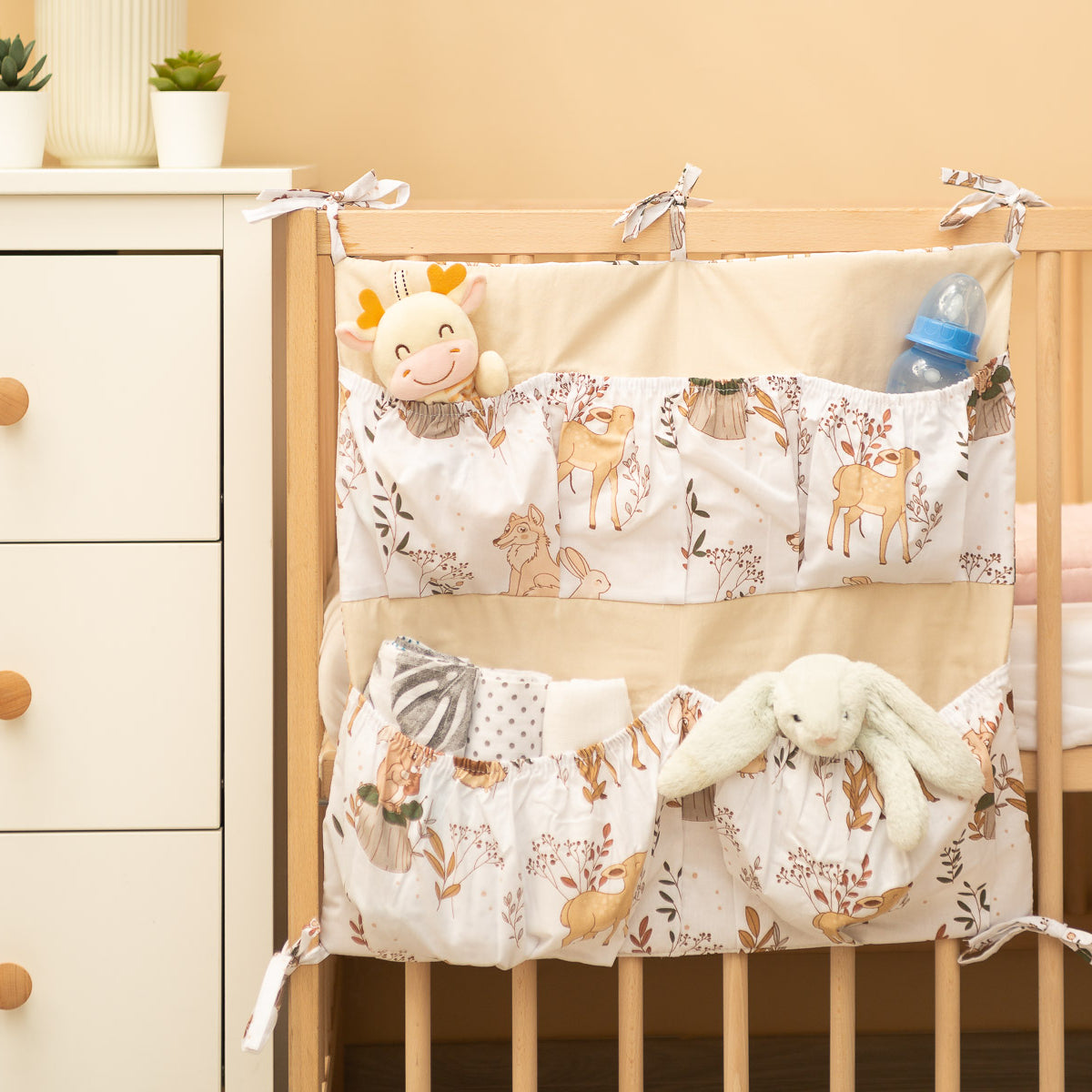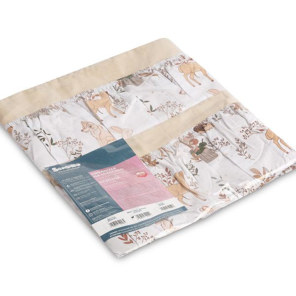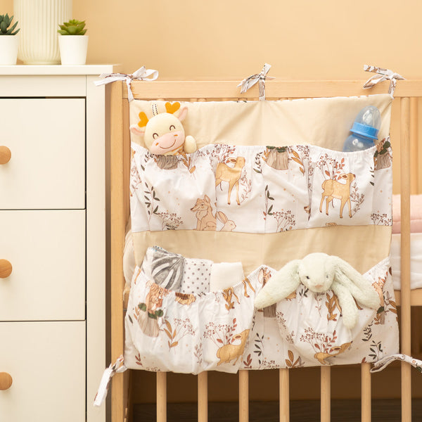 Organizatorul pentru pătuț nu este doar un produs practic, ci și o decorațiune pentru camera bebelușului. Are Ć®n total 5 buzunare, Ć®ntărite cu elastic, care vor găzdui toate accesoriile necesare. Organizatorul poate fi montat cu ușurință pe cadrul pătuțului cu ajutorul curelelor cusute. Ǝn plus, este Ć®ntărit cu un strat de fleece din silicon. Exteriorul este căptușit cu bumbac 100%. Organizatorul poate fi combinat cu alte produse din oferta noastră.