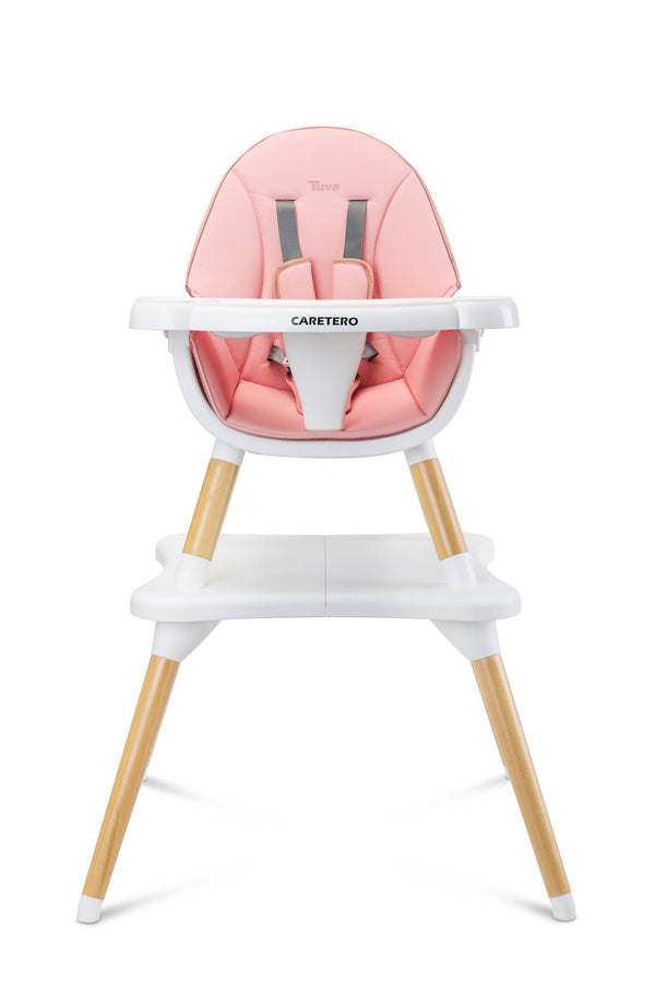 Tuva este fabricat din materiale de înaltă calitate, ceea ce îl face durabil și sigur. Are centuri în cinci puncte și protecție suplimentară pe tavă, care previne alunecarea copilului. Având grijă de confortul copilului și al părintelui, scaunul are o tavă dublă, reglabilă, cu două locuri pentru ceașcă. Scaunul este moale și ușor de curățat.