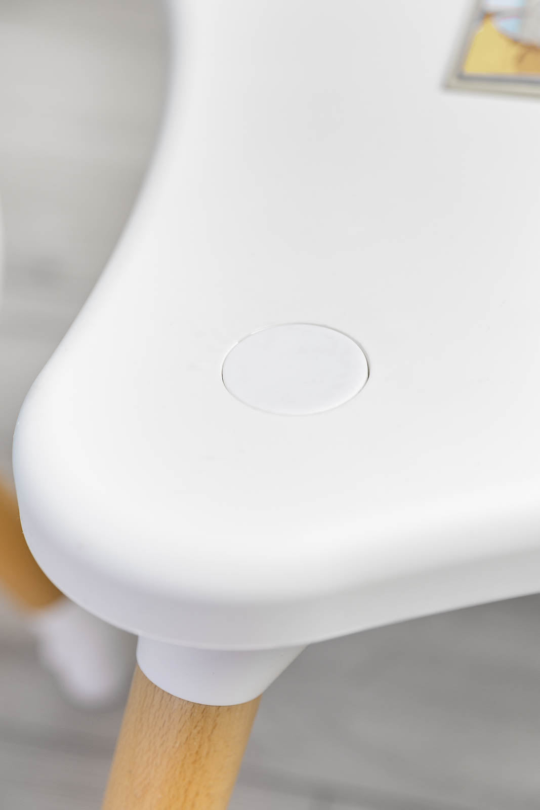 Pe de altă parte, picioarele din lemn sunt finisate cu pernuțe antiderapante, care protejează complet podeaua de zgârieturi.