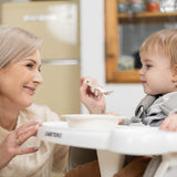 🔒 Centură în 5 puncte și opritor sub tavă pentru a preveni căderea