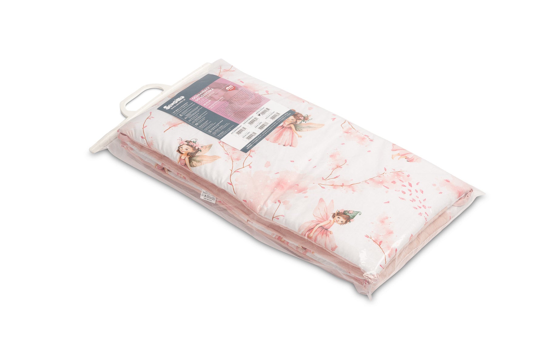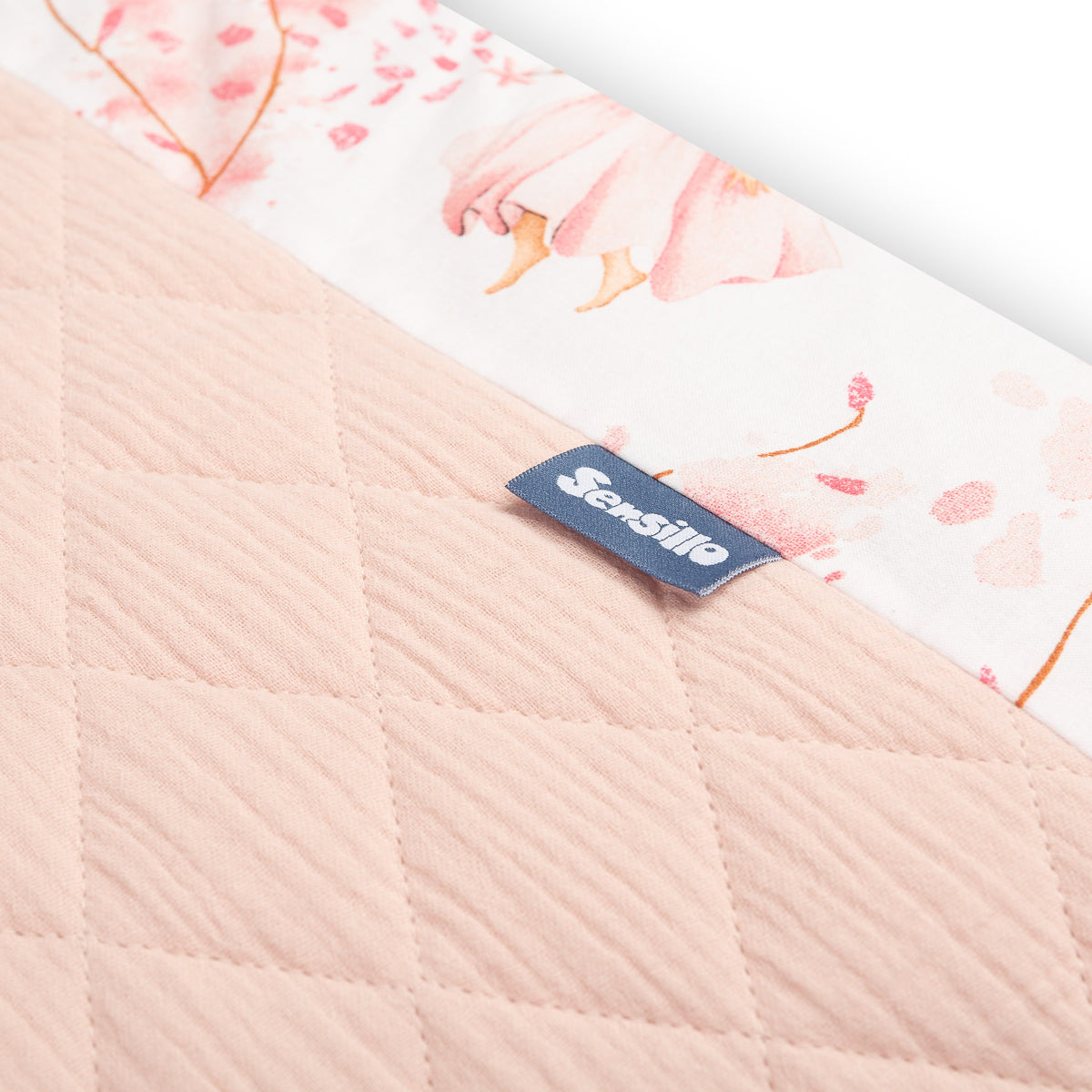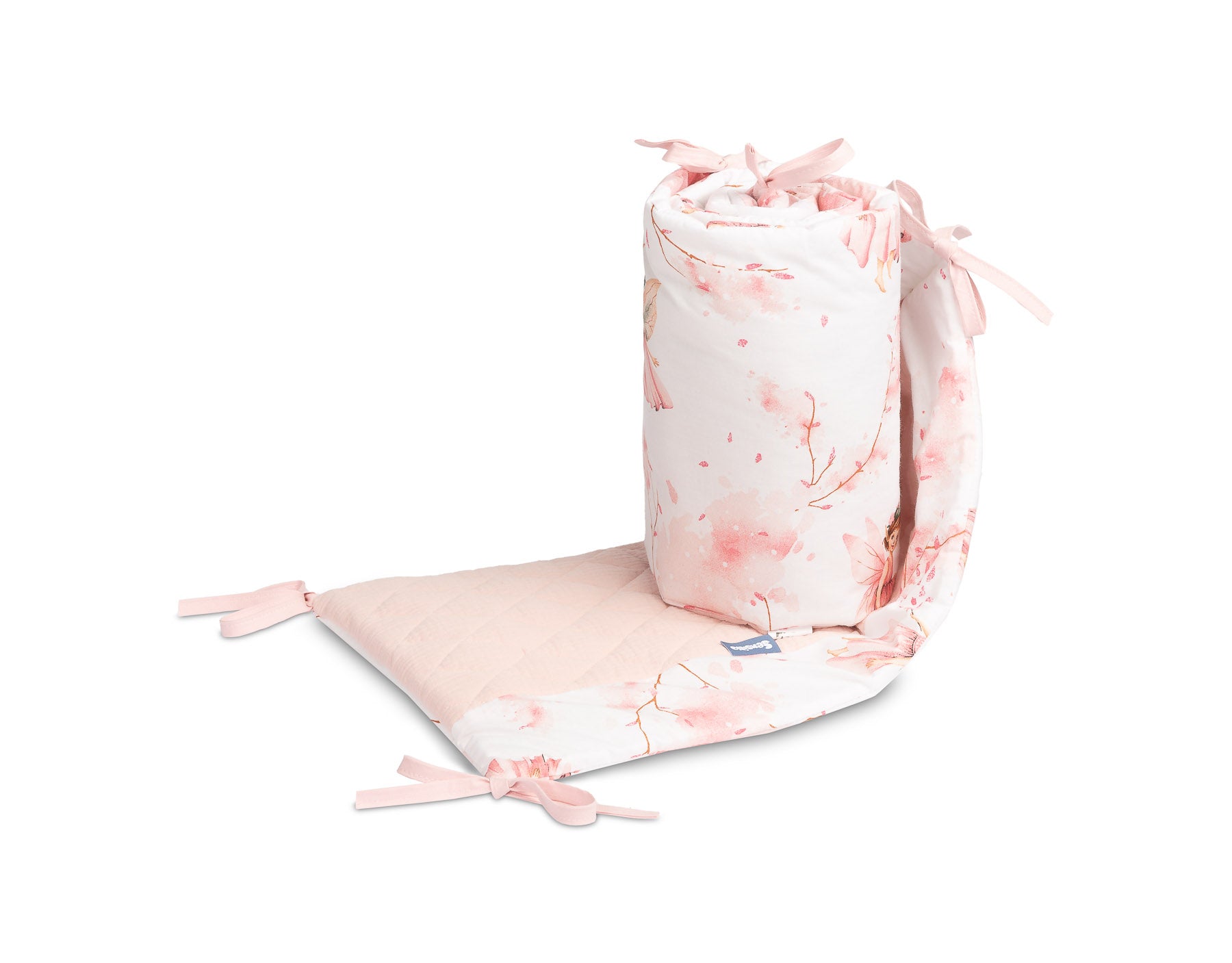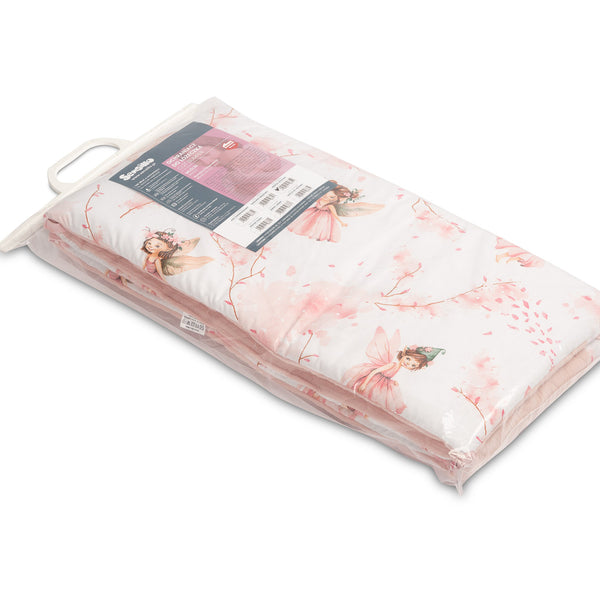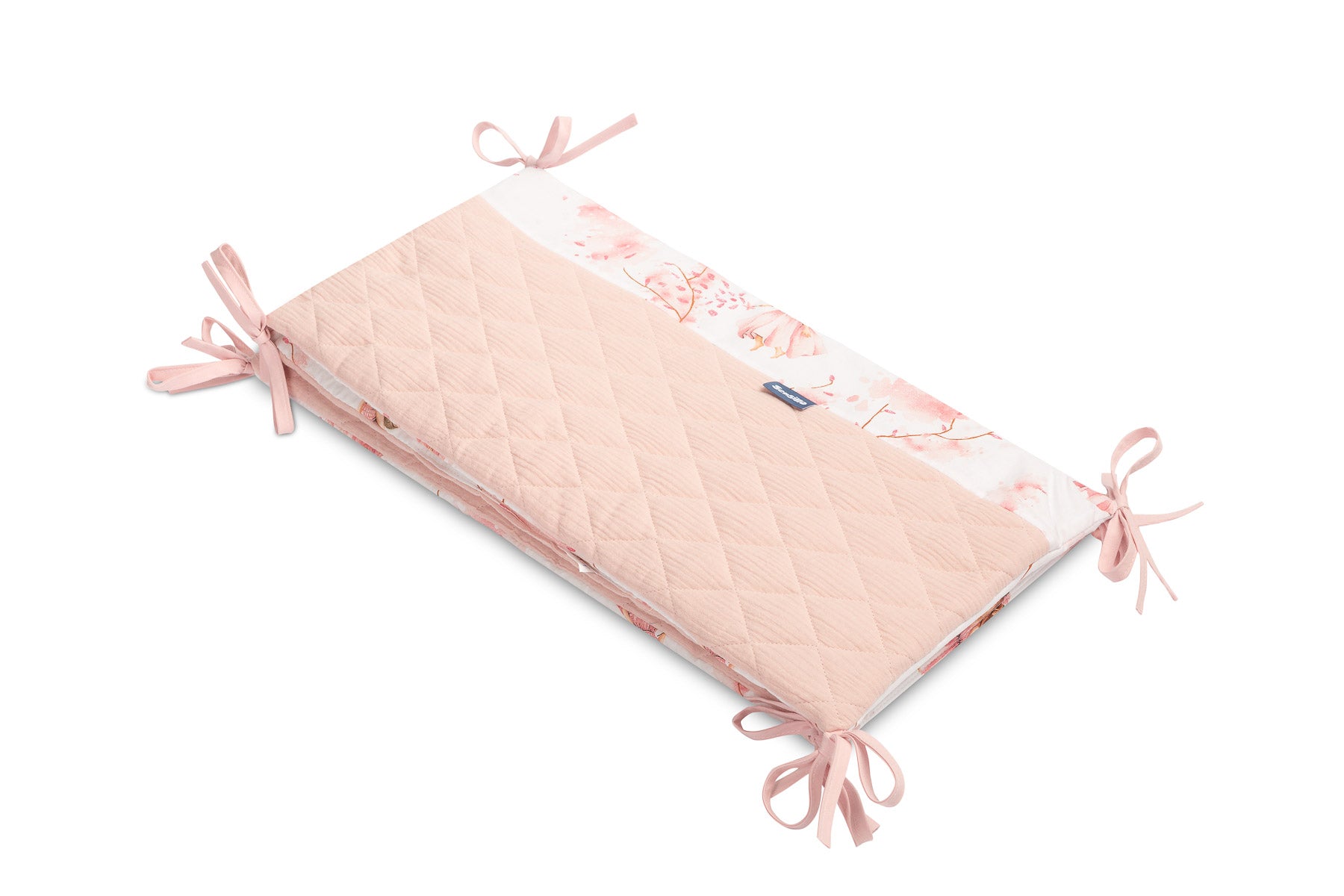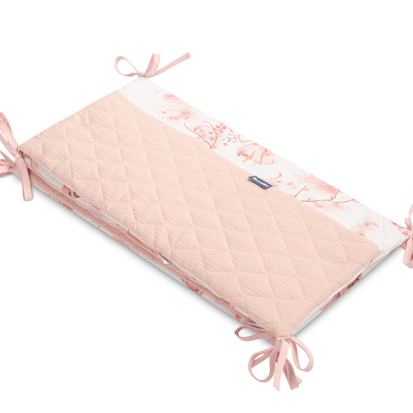 Marginea de protecție pentru pătuț se potrivește fiecărui pătuț standard pentru copii. Marginea este realizată din bumbac moale imprimat și muselină plăcută la atingere. Umplutura din poliester va proteja bebelușul de accidentări în timpul mișcării în pătuț. Marginea rămâne la locul ei datorită panglicilor cu care se fixează de barele pătuțului. Este destinată unui pătuț cu dimensiunile de 120x60 cm. Marginea va fi un accesoriu excelent pentru echipamentul copilului.