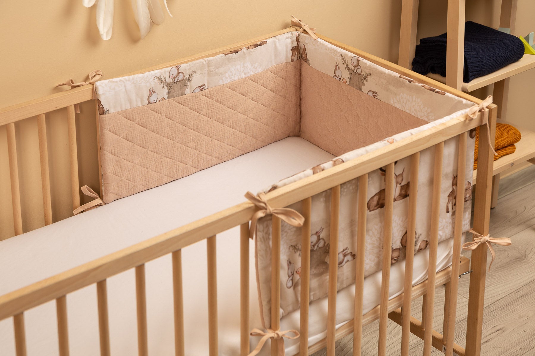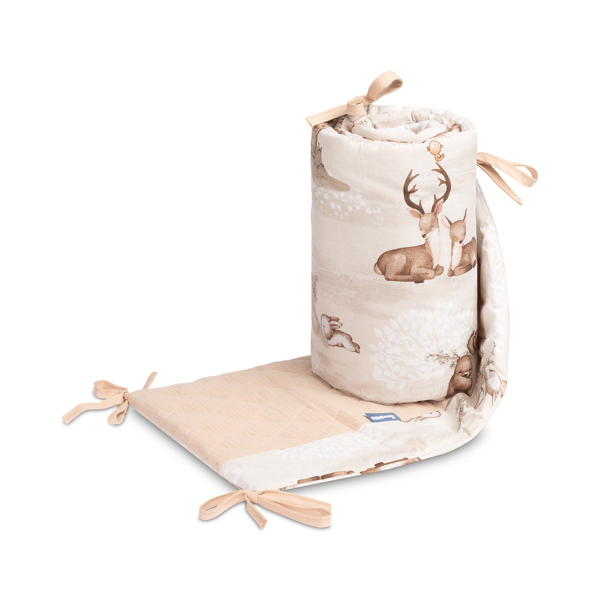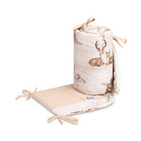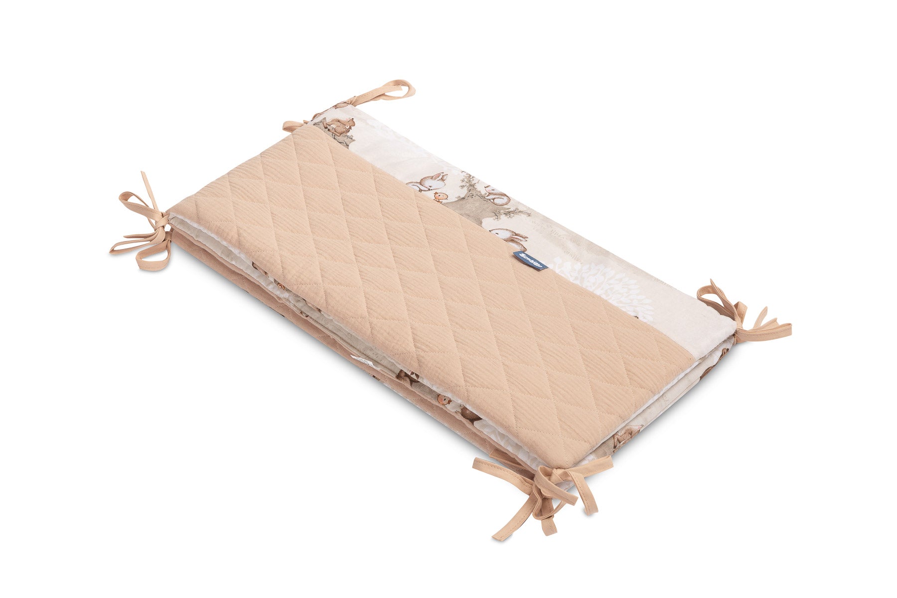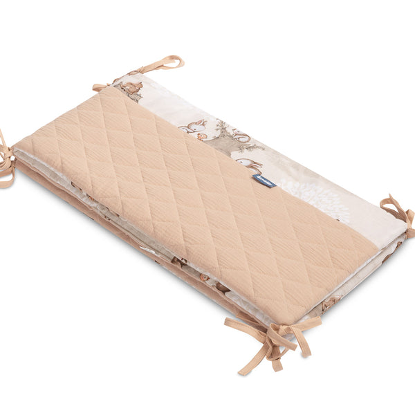 Marginea de protecție pentru pătuț se potrivește fiecărui pătuț standard pentru copii. Marginea este realizată din bumbac moale imprimat și muselină plăcută la atingere. Umplutura din poliester va proteja bebelușul de accidentări în timpul mișcării în pătuț. Marginea rămâne la locul ei datorită panglicilor cu care se fixează de barele pătuțului. Este destinată unui pătuț cu dimensiunile de 120x60 cm. Marginea va fi un accesoriu excelent pentru echipamentul copilului.